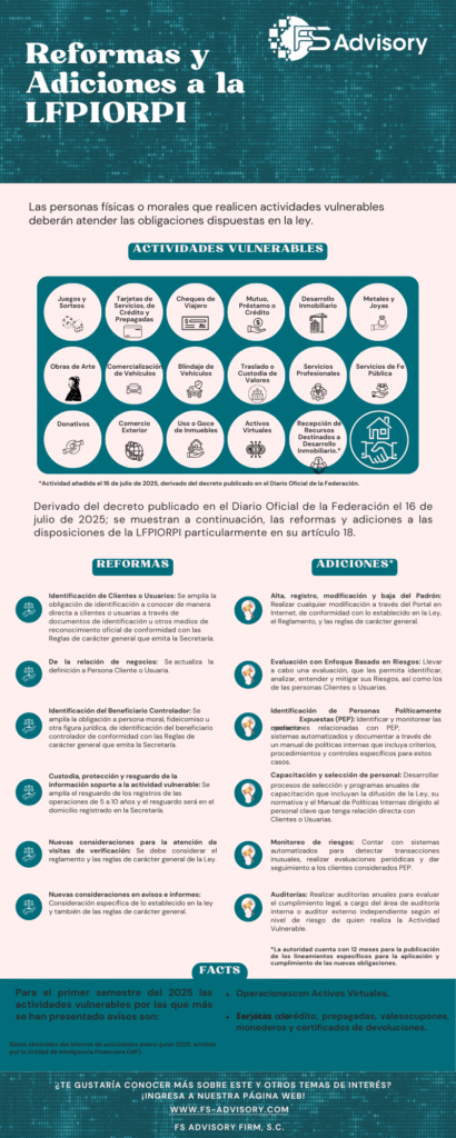 Estas reformas fortalecen el marco legal mexicano contra el lavado de dinero y requieren un alto nivel de cumplimiento por parte de quienes operan en sectores clasificados como vulnerables.